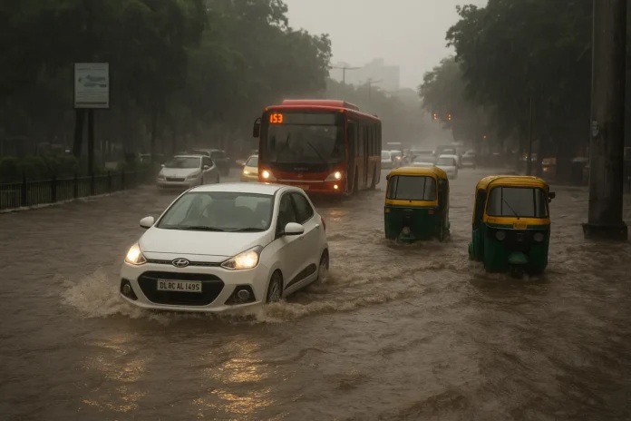 गहरी बारिश से दिल्ली का जीवन ठहर गया—जलभराव और सड़कें बंद, प्रशासन अलर्ट पर