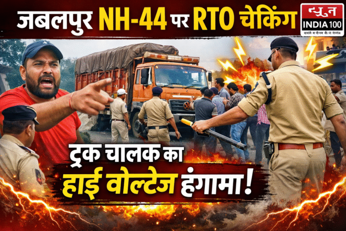 जबलपुर NH-44 पर RTO चेकिंग के दौरान ट्रक चालक का हाई वोल्टेज हंगामा, मौके पर मचा अफरा-तफरी