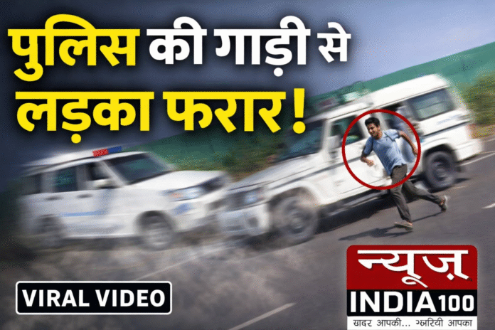 पुलिस की गाड़ी से उतरते ही युवक फरार, सोशल मीडिया पर वायरल वीडियो